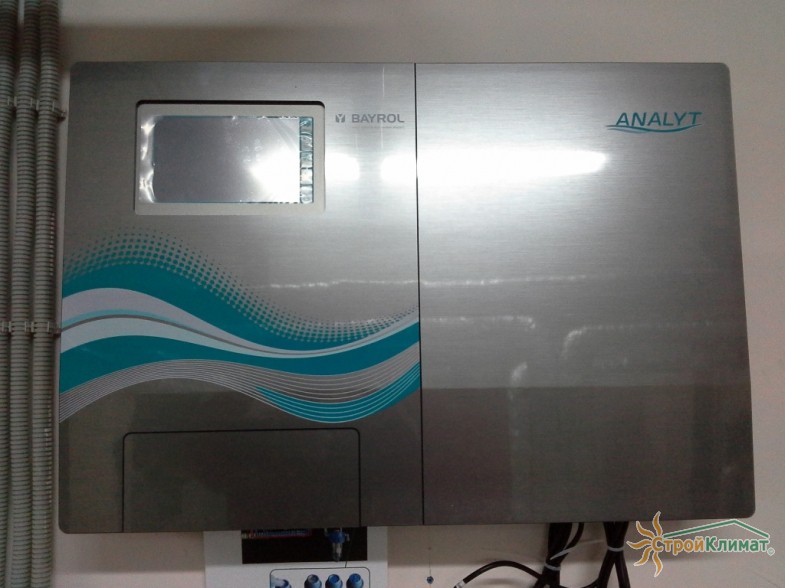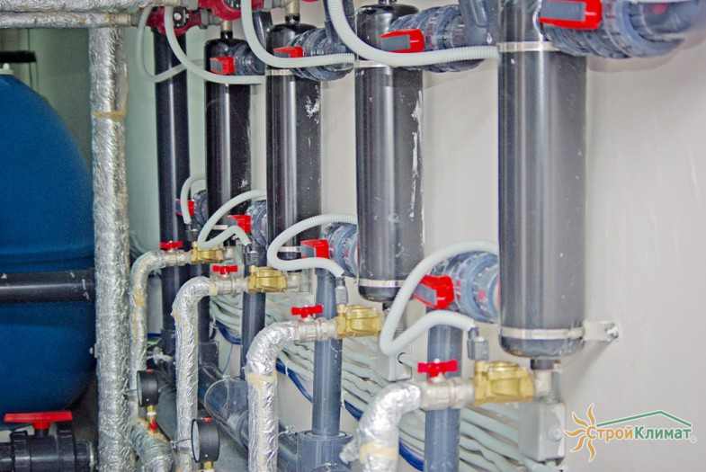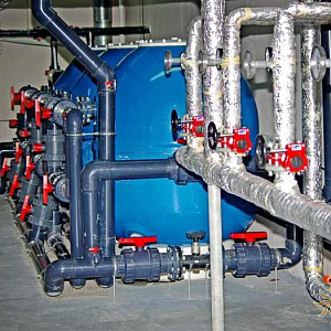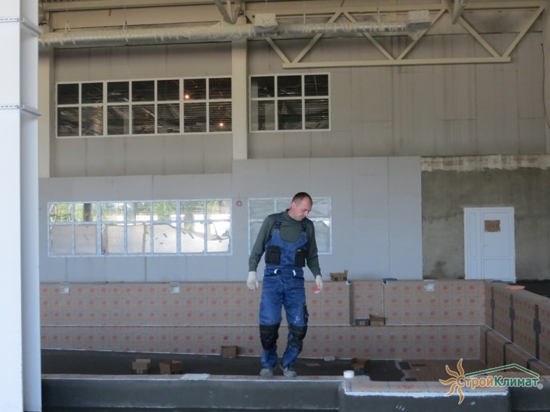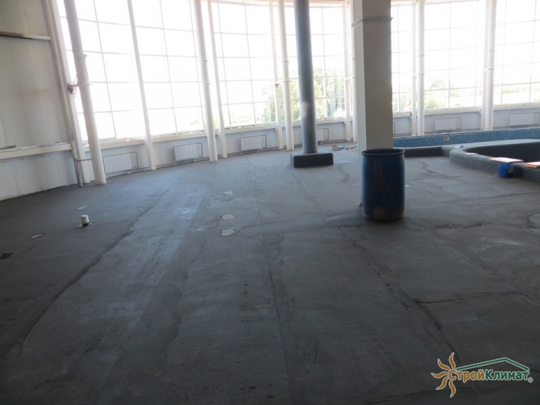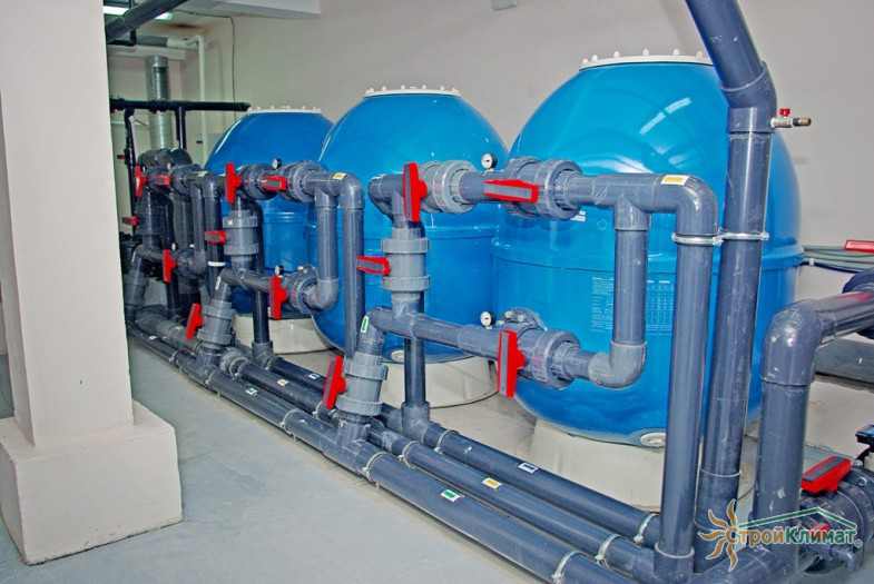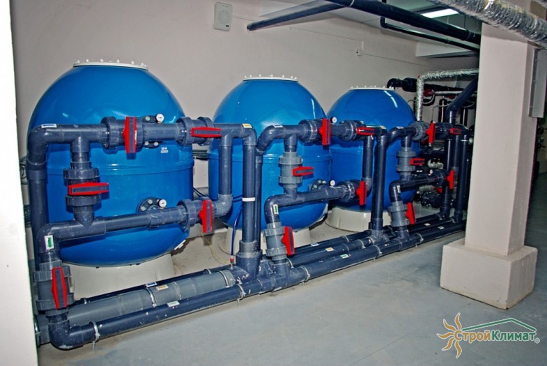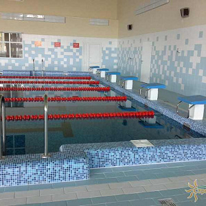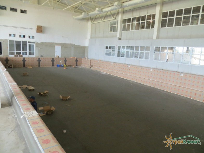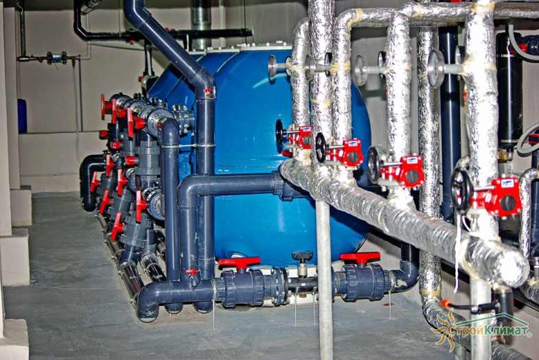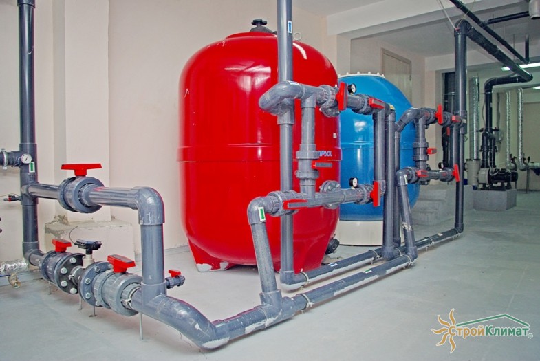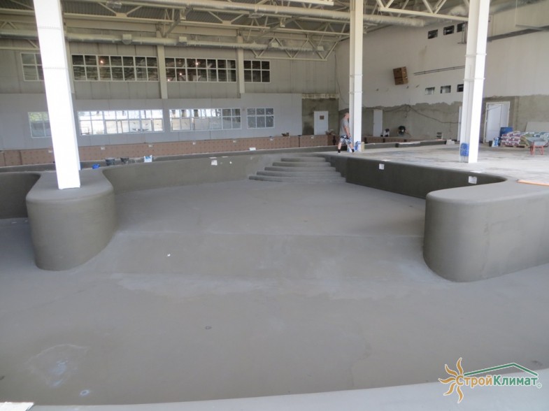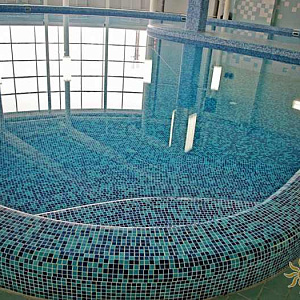 Произведен монтаж бассейна, оборудования водоподготовки, установка водной горки, облицовка чаш бассейна.