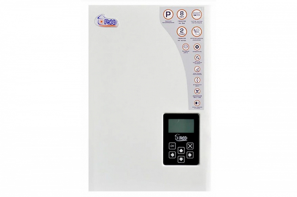 Котел РЭКО отличается современным дизайном, надежной конструкцией (бак и тэны- нержавеющая сталь) и отличным функционалом (недельное программирование, счетчик расхода электроэнергии). Коммутация ТЭНов в котле осуществляется при помощи полупроводников — это гарантирует большой ресурс, бесшумную работу, исключает вероятность подгорания контактов и радиопомех. Группы ТЭНов позволяют выполнять равномерную трехступенчатую регулировку по мощности без перекоса фаз. Устойчиво работают при пониженном напряжении. Допускается использование котла совместно с системами «теплый пол» (точность датчика 0,5 oC).