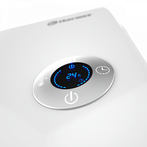 Панель управления с дисплеем. Управлять новым конвектором можно как из приложения, так и с панели на самом устройстве. Здесь доступны базовые настройки - регулировка режимов мощности, настройки температуры в диапазоне от 16 до 40oC, таймер на 24 часа, возможность блокировки панели управления для защиты от несанкционированного управления;