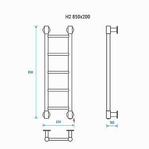 Смотреть все услугиEnergy H2 850x200 - электрический полотенцесушитель - лесенка с пятью выпуклыми стационарными перекладинами, равномерно разнесенными по высоте изделия. Выполнен из высококачественной пищевой нержавеющей стали. Небольшая ширина полотенцесушителя (всего 234 мм) позволяет размещать его на ограниченной площади, например, в узких нишах и простенках.