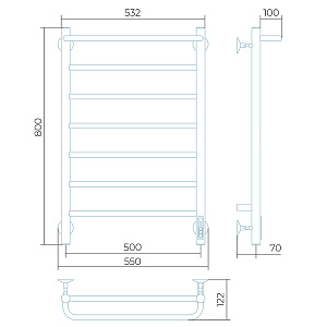 Электрический полотенцесушитель Larusso (Ларуссо) - премиальная модель с универсальным подключением. Прибор оснащен встроенным терморегулятором, который позволяет устанавливать нужную степень нагрева и экономить электроэнергию. Полотенцесушитель изготовлен из высококачественной нержавеющей стали, устойчивой к коррозии и высоким температурам.