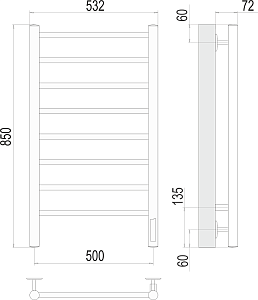Смотреть все услугиЭлектрический полотенцесушитель Аврора П8 500х850 Электро (quick touch) - отличный выбор для вашего дома. Стильный и функциональный полотенцесушитель с 8 перекладинами, размером 850х532мм. Тип теплоносителя: Сухой (ЕвроТЭН).