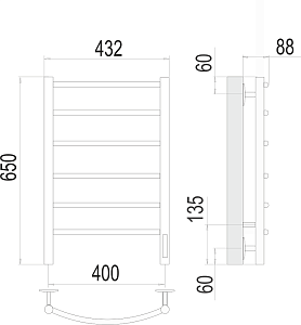 Смотреть все услугиЭлектрический полотенцесушитель Классик П6 400х650 Электро (quick touch) - отличный выбор для вашего дома. Стильный и функциональный полотенцесушитель с 6 перекладинами, размером 650х432мм. Тип теплоносителя: Сухой (ЕвроТЭН).