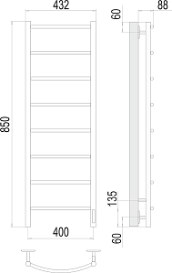Смотреть все услугиЭлектрический полотенцесушитель Классик П8 400х850 Электро (quick touch) - отличный выбор для вашего дома. Стильный и функциональный полотенцесушитель с 8 перекладинами, размером 850х432мм. Тип теплоносителя: Сухой (ЕвроТЭН).