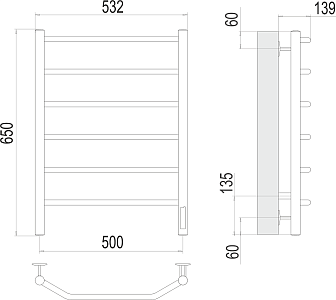 Смотреть все услугиЭлектрический полотенцесушитель Виктория П6 500х650 Электро (quick touch) - отличный выбор для вашего дома. Стильный и функциональный полотенцесушитель с 6 перекладинами, размером 650х532мм. Тип теплоносителя: Сухой (ЕвроТЭН).