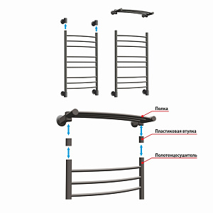 Наличие полки расширяет функциональные возможности полотенцесушителя — увеличивается полезная площадь для просушки изделий из ткани, появляется возможность сушить объёмные предметы, например, головные уборы и обувь.