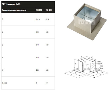 / Потолочно проходной узел FERRUM Н(430/0,5 мм + мин.) max t=600оC Ф200
