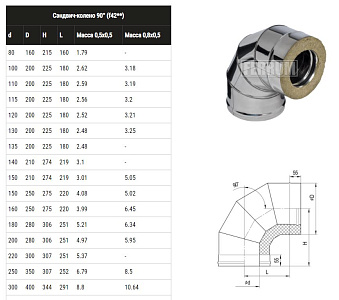 Сэндвич-колено FERRUM 90гр. (430/0,5мм + нерж.) Ф150х210