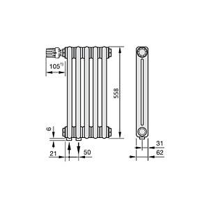 Смотреть все услугиZehnder Charleston 2056 - трубчатый стальной радиатор с 20 секциями и 2 трубками в каждой секции.