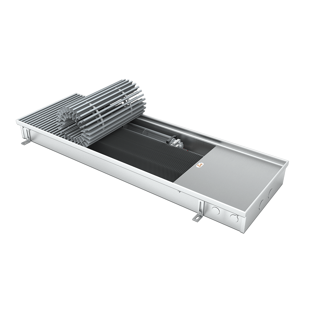 Смотреть все услугиВстраиваемый в пол конвектор Eva KB с принудительной конвекцией - отопительный прибор, в котором установлен медно-алюминиевый теплообменник и тангенциальный вентилятор, тепло от которого передаётся в отапливаемое помещение путём естественной (при выключенном вентиляторе), и принудительной (при включённом вентиляторе) конвекции.