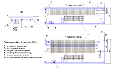/ Внутрипольный конвектор с вентилятором КЗТО Бриз В 260х120х1000, 1 теплообменник