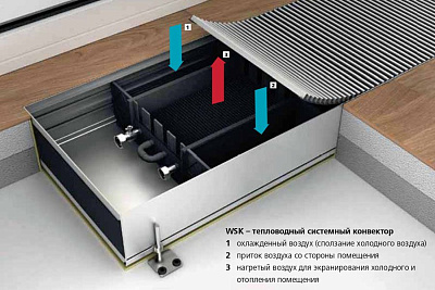 Конвекторы M?hlenhoff WSK предназначены для монтажа в конструкции пола (высота стяжки) перед большими застекленными поверхностями или в качестве системы общего отопления.