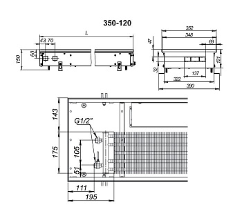 / Внутрипольный конвектор с вентилятором Techno KVZV 350-120-1800