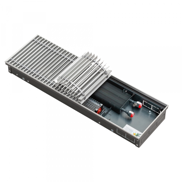 Встроенные вентиляторы обеспечивают дополнительный объем воздуха, проходящий через внутрипольные встраиваемые конвекторы KVZV (серия КВЗВ), тем самым увеличивая их тепловую мощность. Вентилятор имеет низкий уровень шума и вибрации, а его скорость вращения (а значит и мощность внутрипольного встраиваемого конвектора) регулируется с помощью специальной автоматики.