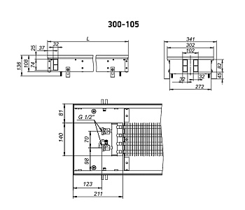 / Внутрипольный конвектор с естественной конвекцией Techno Power KVZ 300-105-2000